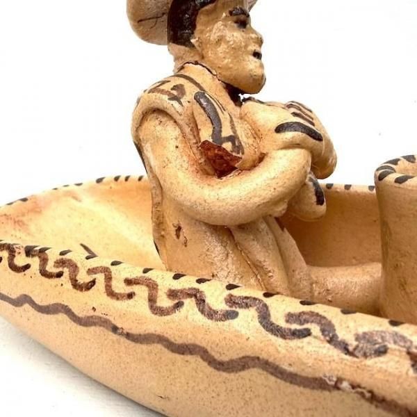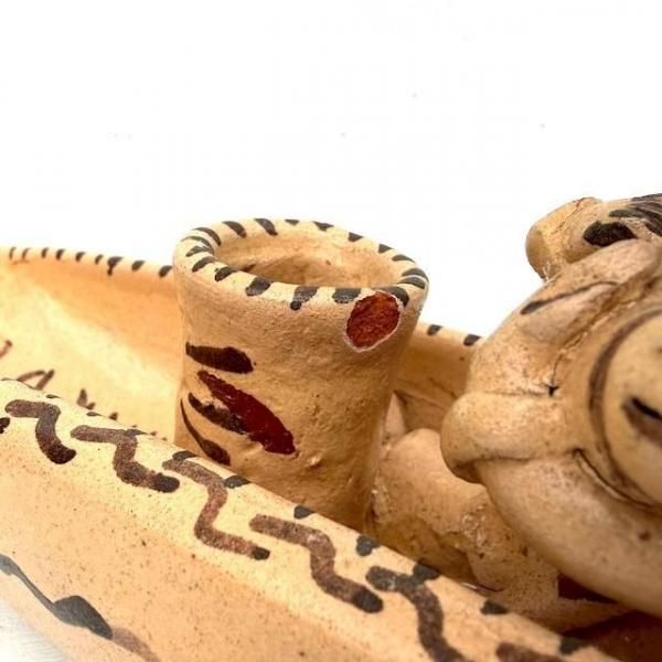 ミチョアカン 陶芸 土人形 燭台 [舟とワカサギと男] アウトレット