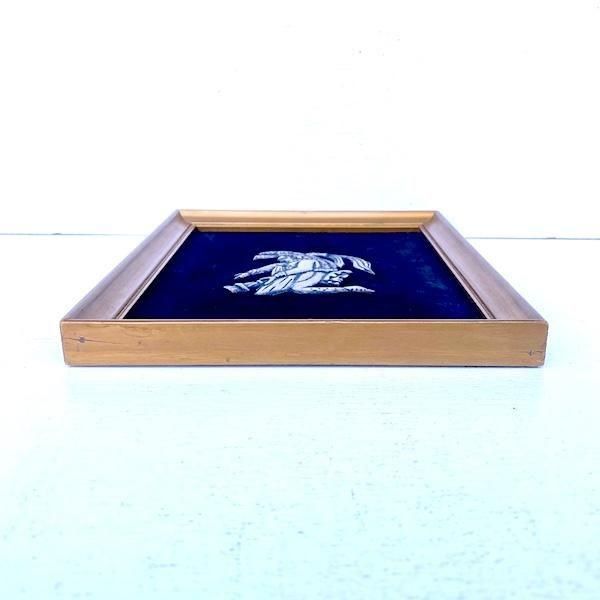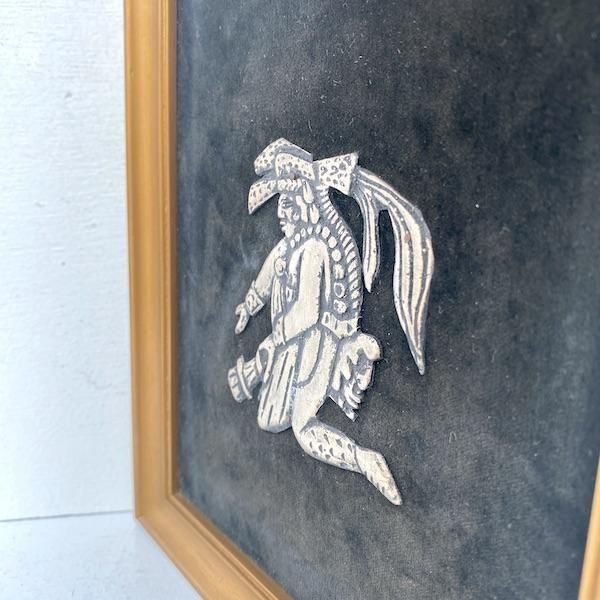 骨董市でピックアップした黒いベルベット張りの額入りオーナメント。