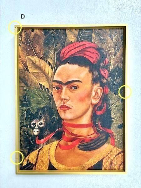 こちらはフリーダの象徴的な作品をキャンパス風にプリントし、金メッキのフレームに入れたインテリア。