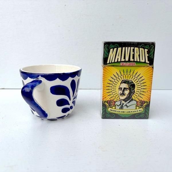 白地にブルーの絵付けがメキシコらしい、小ぶりで可愛らしいテーブルウェアです。