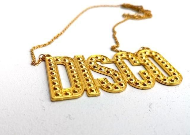 大胆な「DISCO」の文字をモチーフにしたネックレス。