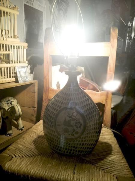 こちらはトナラ焼きのボトルが本体になったテーブルランプ。