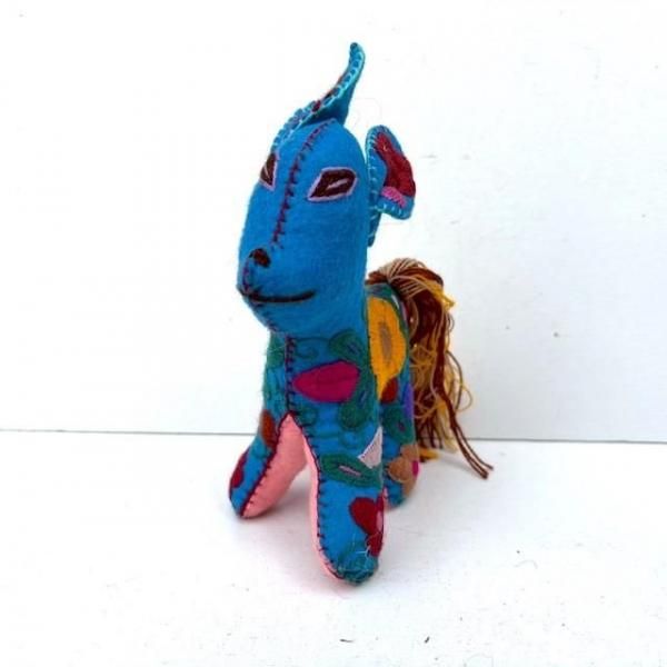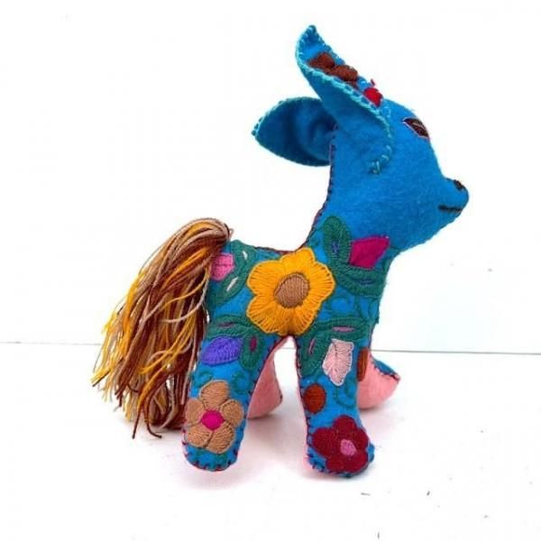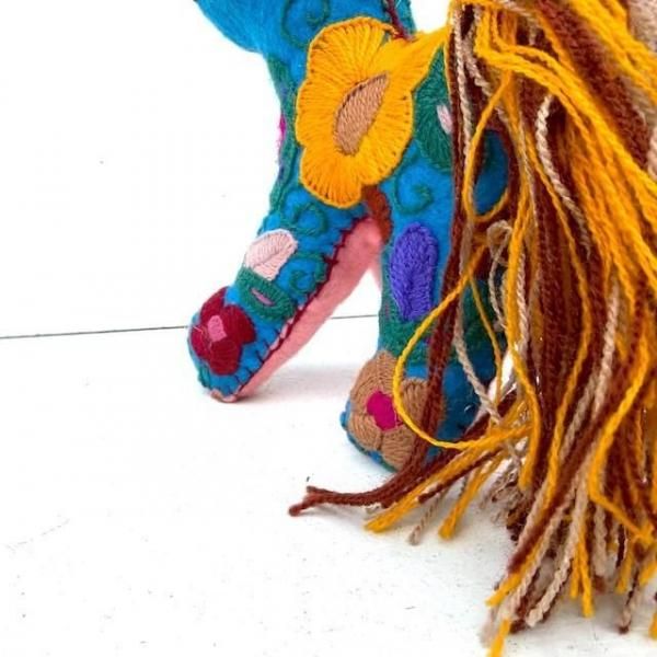見事な刺繍が施された鮮やかなぬいぐるみです。