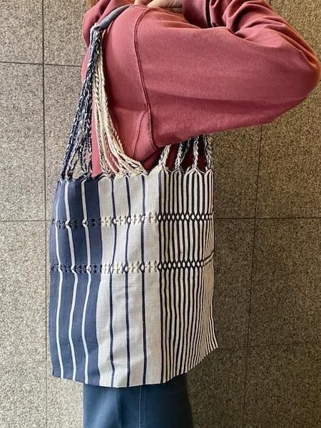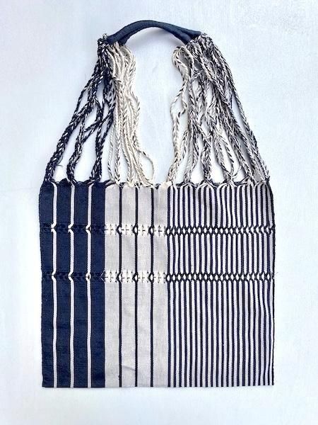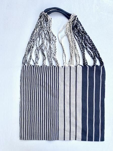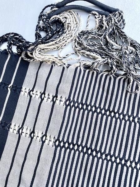 チアパス テキスタイル ハンモックバッグ [アイボリー&ダークグレー ストライプ 2デコライン]