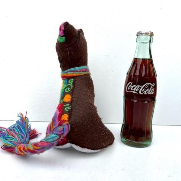 たっぷりの毛糸で作られたタッセルと尻尾の三つ編みもキュート。