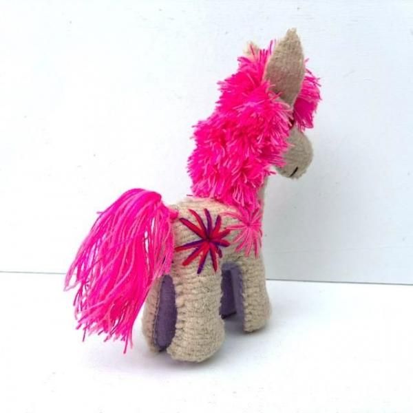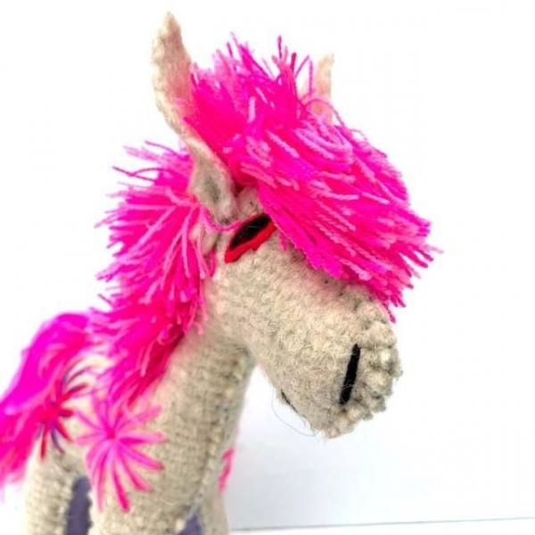 ナチュラルカラーに映える鮮やかなピンクの立髪と尻尾。