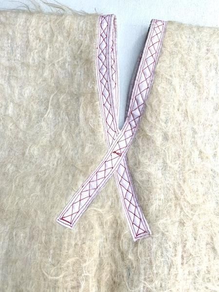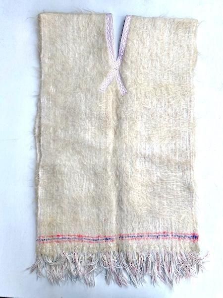 頭からかぶる一枚布の形で、サイドは開いているので中に厚着もできます。