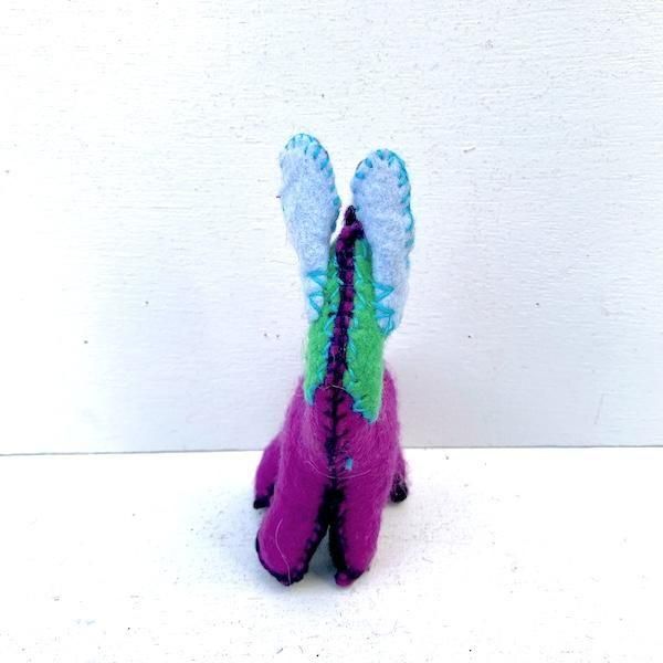 ブルーの耳にグリーンの頭、パープルのボディととてもカラフルな配色。