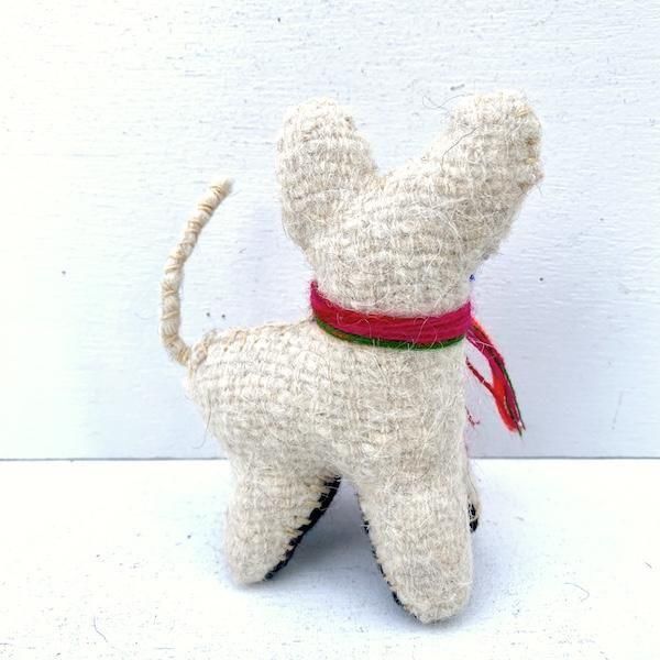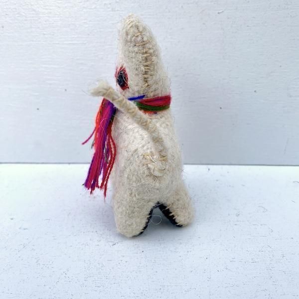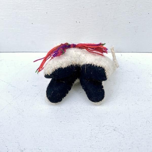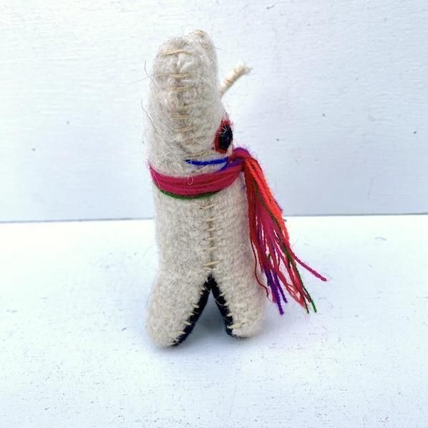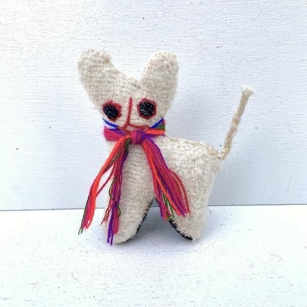 アイボリーのボディに、首のカラフルな糸の装飾がアクセントに。