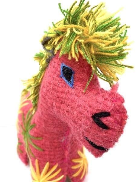アニマリート ぬいぐるみ [ウマ サーモンピンク&イエロー 刺繍 21cm] チアパス