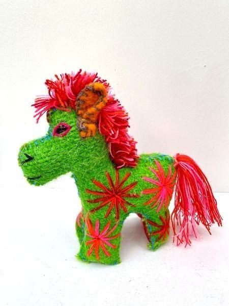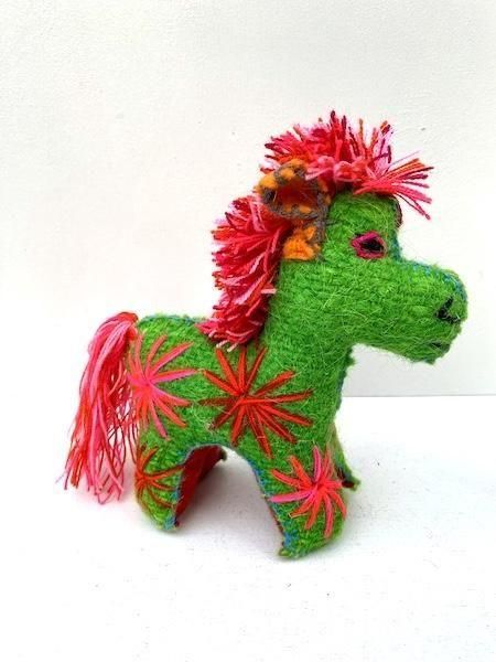 アニマリート ぬいぐるみ [ウマ グリーン&レッド 刺繍 21cm] チアパス