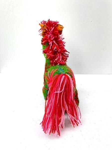 グリーンのボディに、レッド系のフサフサのたてがみがとっても色鮮やか。