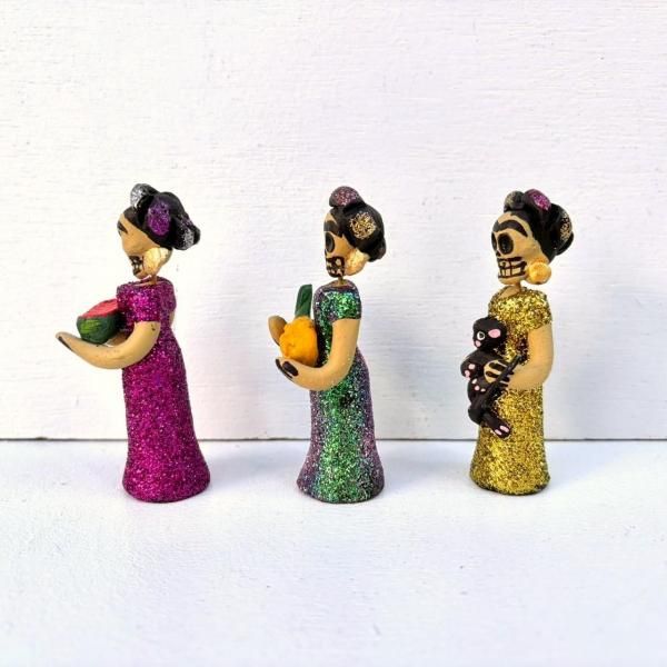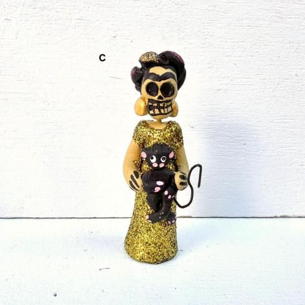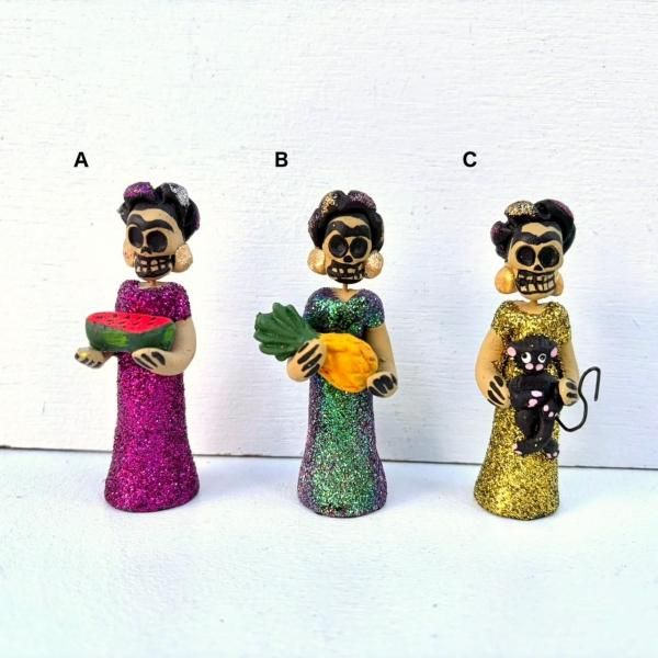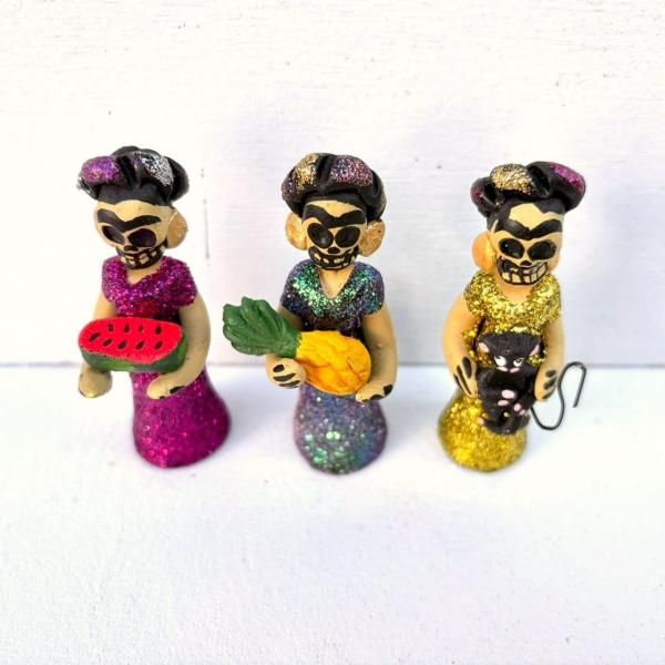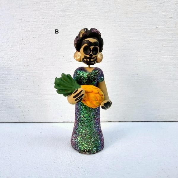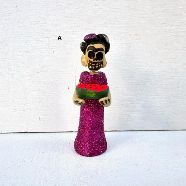 オアハカ カラベラ がいこつ 陶製人形 [フリーダ・カーロ ピンク/グリーン/イエロー] 8cm