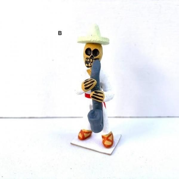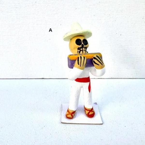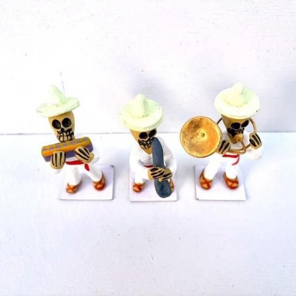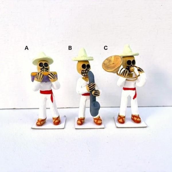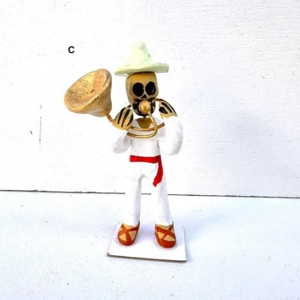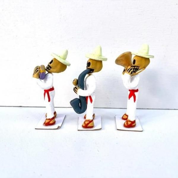 オアハカ カラベラ がいこつ 陶製人形 [楽団 ハーモニカ/サックス/スーザフォン] 8cm