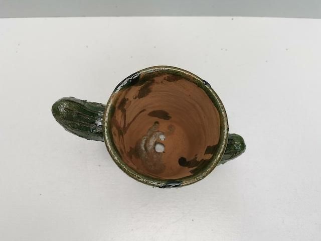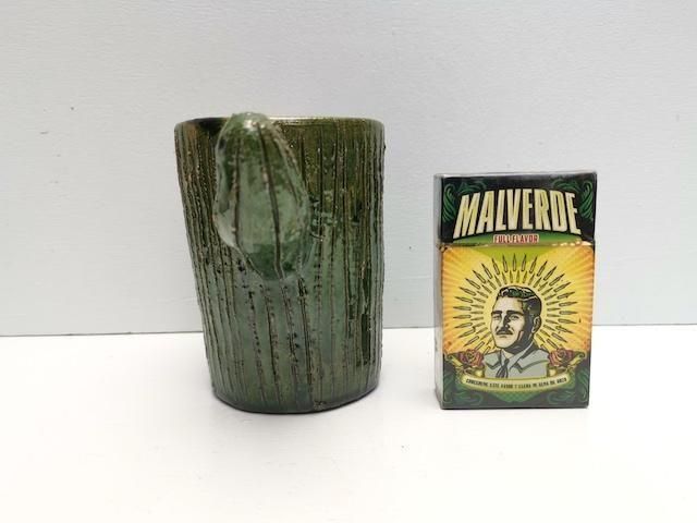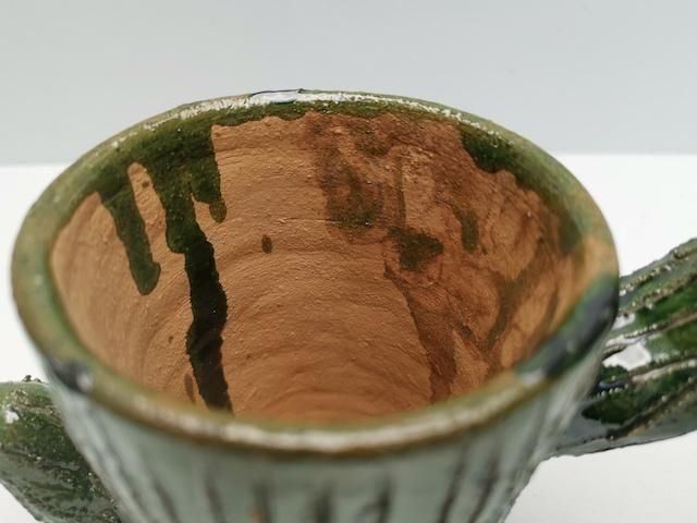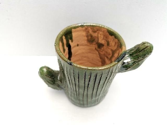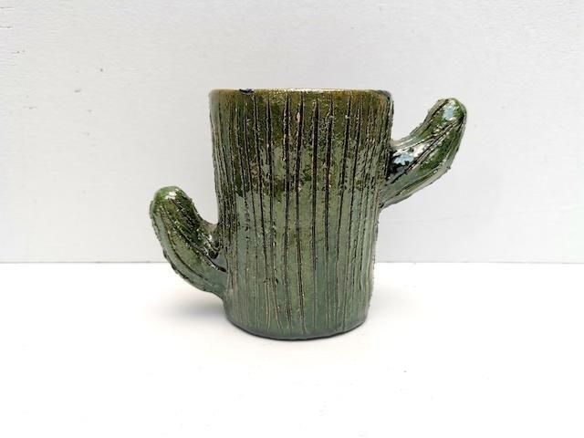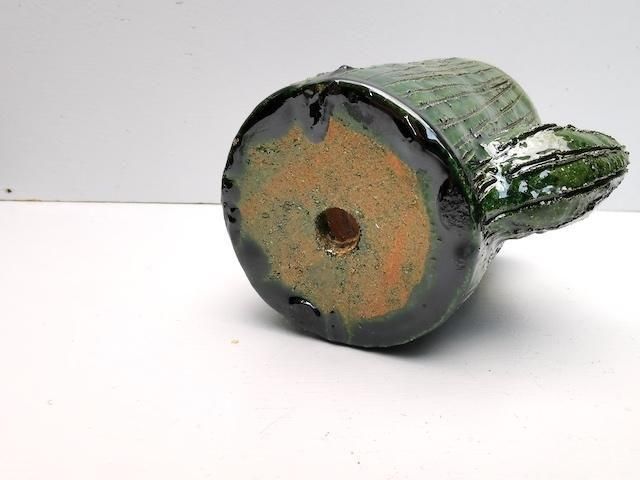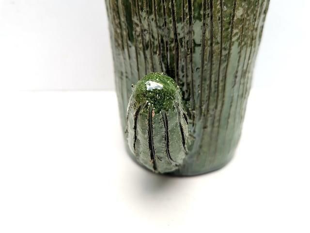 緑釉のムラとざっくりしたスリットが上手くサボテンの質感を表現しています。