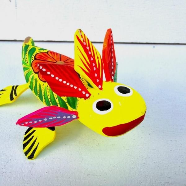 オアハカ 木彫り人形 [ウーパールーパー ネオンイエロー ハマイカ 10cm]