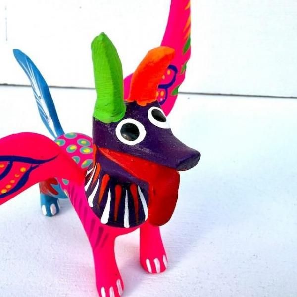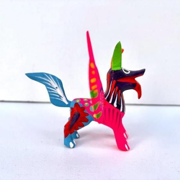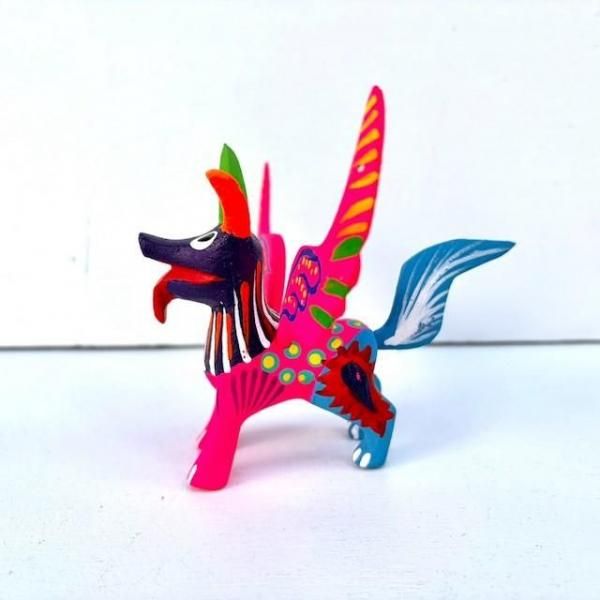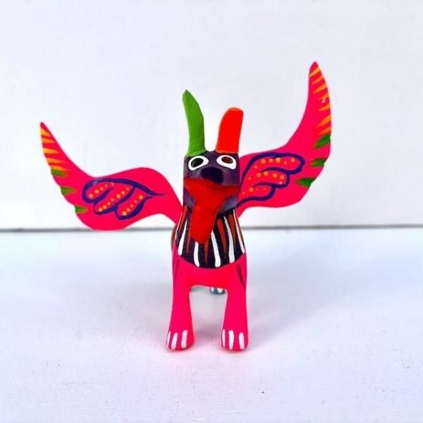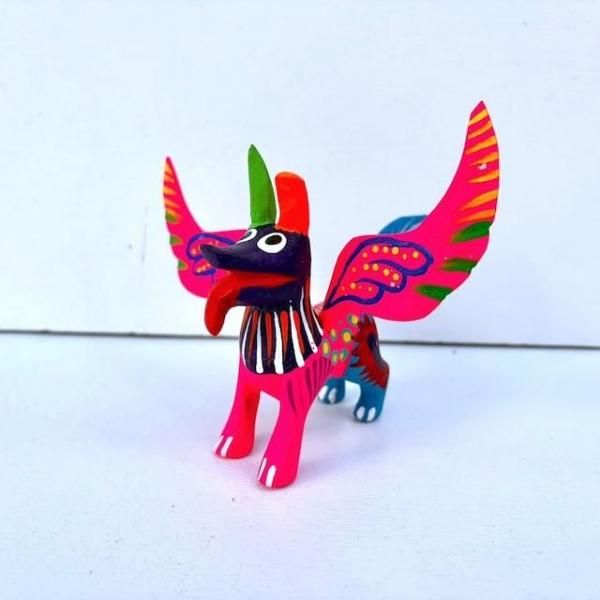 オアハカ 木彫り人形 [ダンテ パープル&ピンク 9cm]