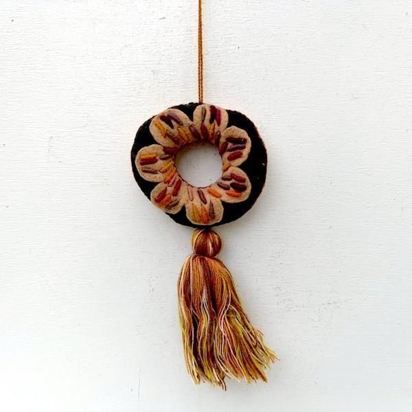 ブラウン系のミックスカラーのタッセルがついています。