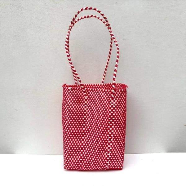 オアハカ メルカドバッグ かごバッグ [タテ長ショルダー/レッド&ホワイト]