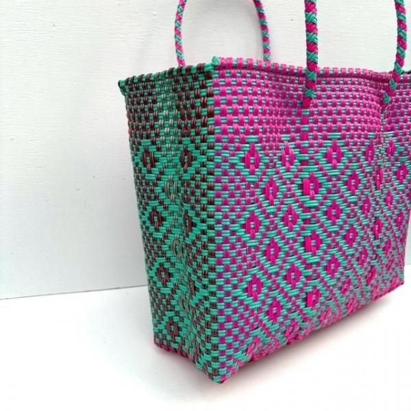 オアハカ メルカドバッグ かごバッグ [スモール/ピンク&ミントブルー(ダイヤ模様)]