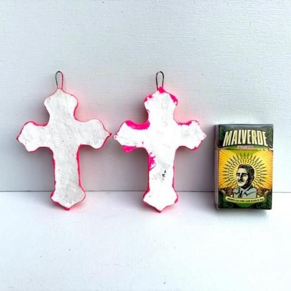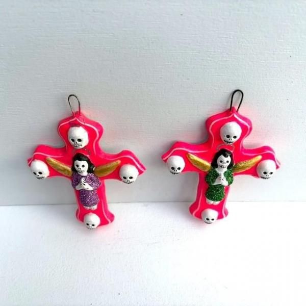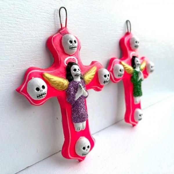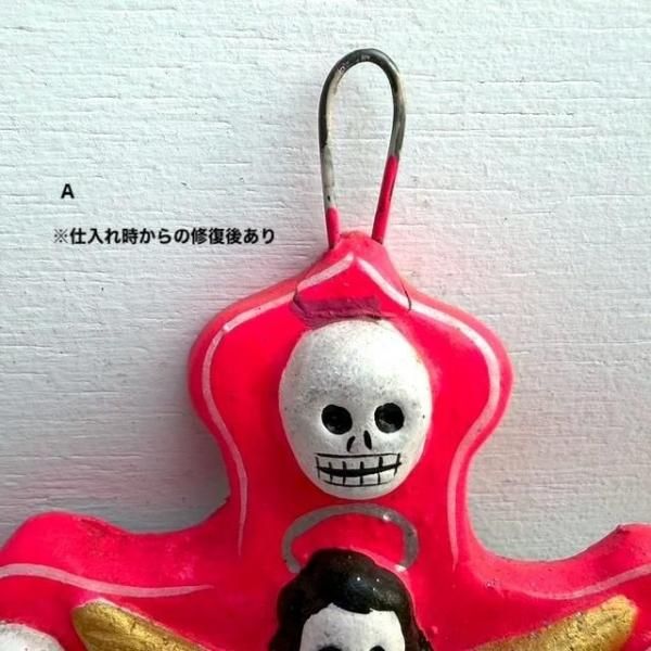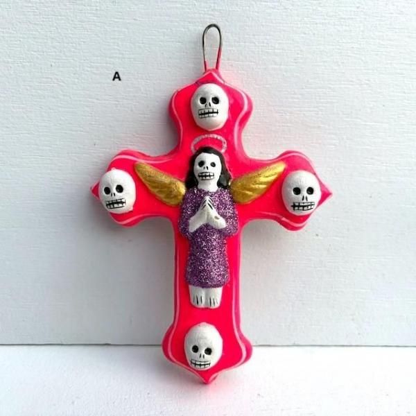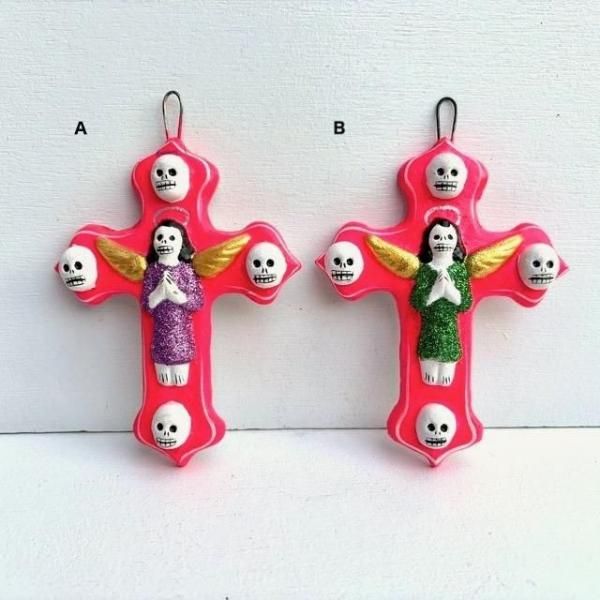 カラベラ がいこつ 石膏オーナメント [十字架 クロス ガイコツ天使 ピンク] 13.5cm