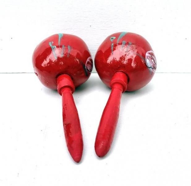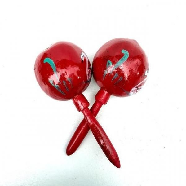 手描きの絵柄が施されたマラカスは、おもちゃや演奏用にはもちろん