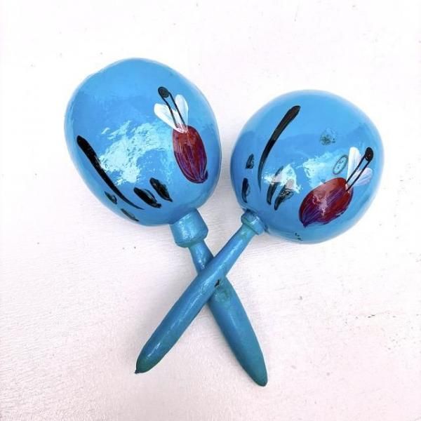 手描きの絵柄が施されたマラカスは、おもちゃや演奏用にはもちろん