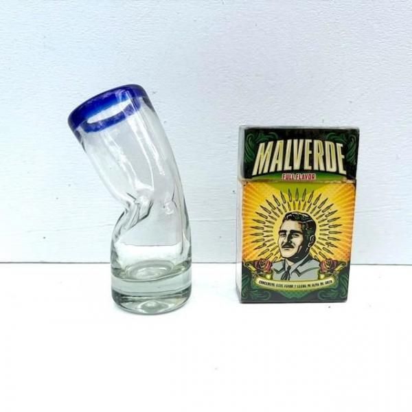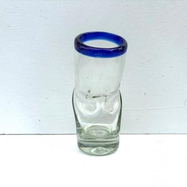 メキシカングラス 吹きガラス [曲がったショットグラス ブルー]