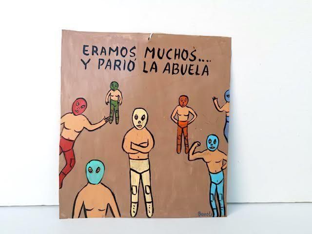 さまざまなポーズをしたルチャドール(=レスラー)が描かれた一枚です。