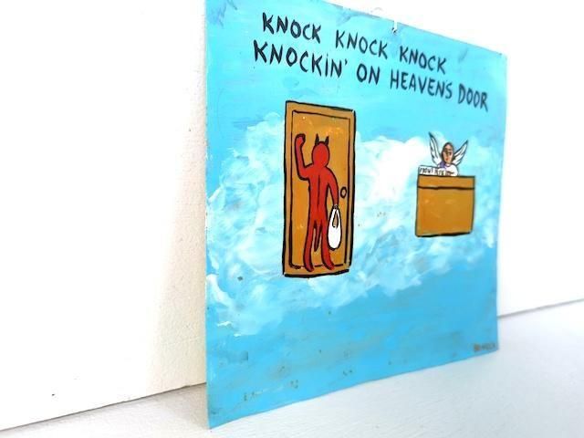 こちらは天使の待つ天界のドアを叩く悪魔というシュールなデザイン。