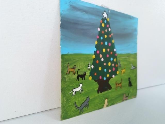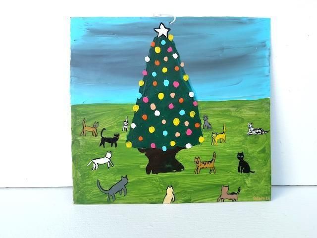 ボノラ レタブロ エクスボト ブリキ絵 [クリスマスツリーに集まる猫たち]