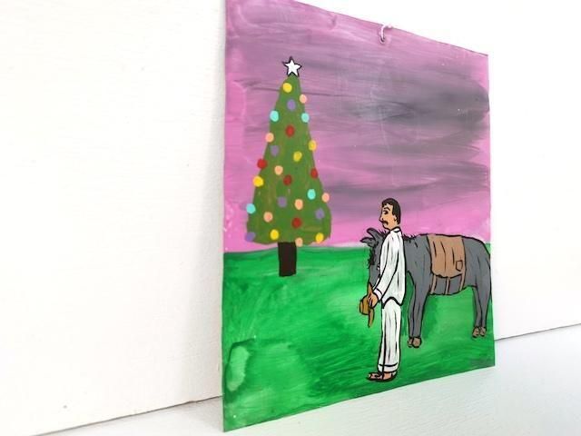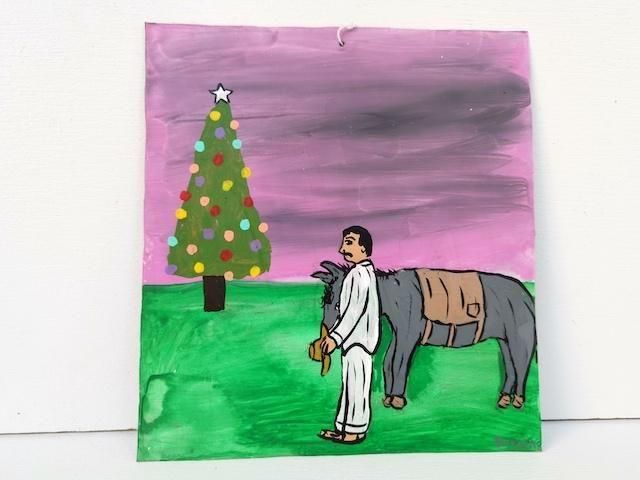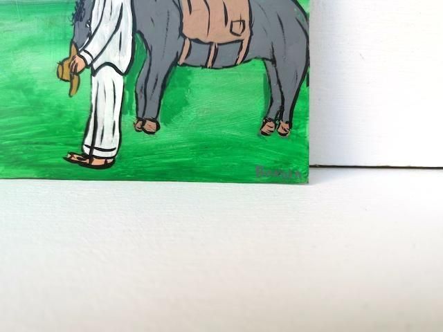 ボノラ レタブロ エクスボト ブリキ絵 [ロバを曳く男性]