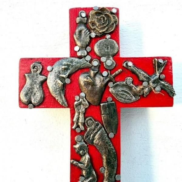 ¿¼¤¤ÀÖ¿§¤Î¥¯¥í¥¹¤ò¥Ù¡¼¥¹¤Ë¡¢¥³¥é¥½¥ó(¡á¥Ï¡¼¥È)¤òÃæ¿´¤È¤·¤Æ